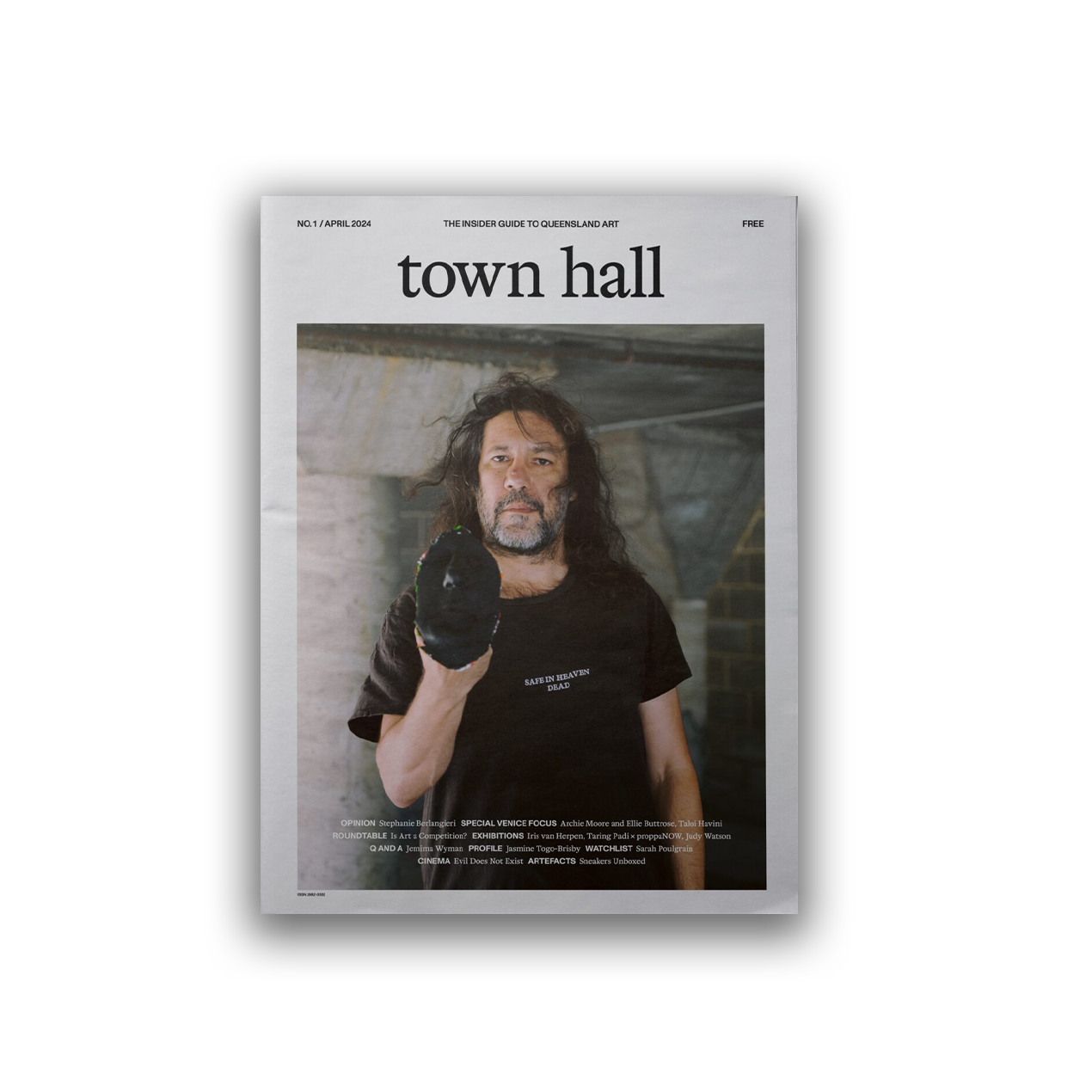 Introducing our new publishing project Town Hall, a newspaper about Queensland art. In the inaugural issue, we explore Queensland’s presence at the 2024 Venice Biennale, speaking to Archie Moore, Ellie Buttrose, and Taloi Havini. Adam Ford explores what brings Taring Padi and proppaNOW together for their new cross-cultural collaboration, Shannon Brett speaks to Judy Watson about her forty-year-long practice reflecting on place and sovereignty. And more.