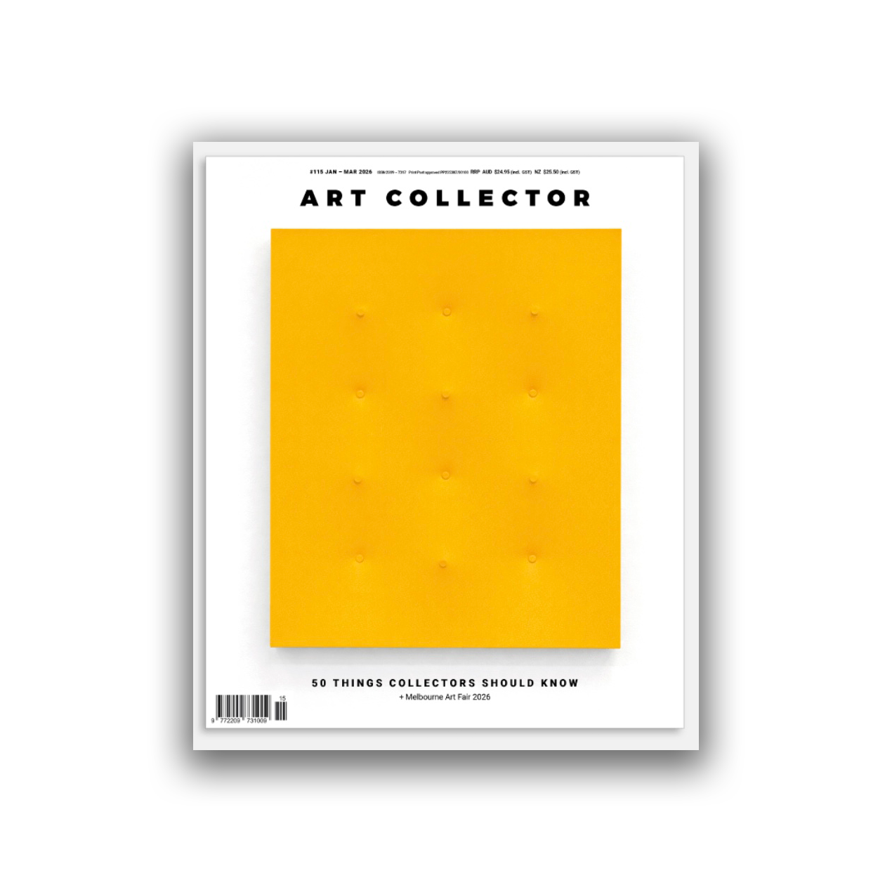 Art Collector issue #115 (January–March 2026). This quarter we present our flagship 50 Things Collectors Should Know edition—the essential guide to the artists, exhibitions, curators and trends that will shape collecting in the year ahead. Plus, our Melbourne Art Fair preview.