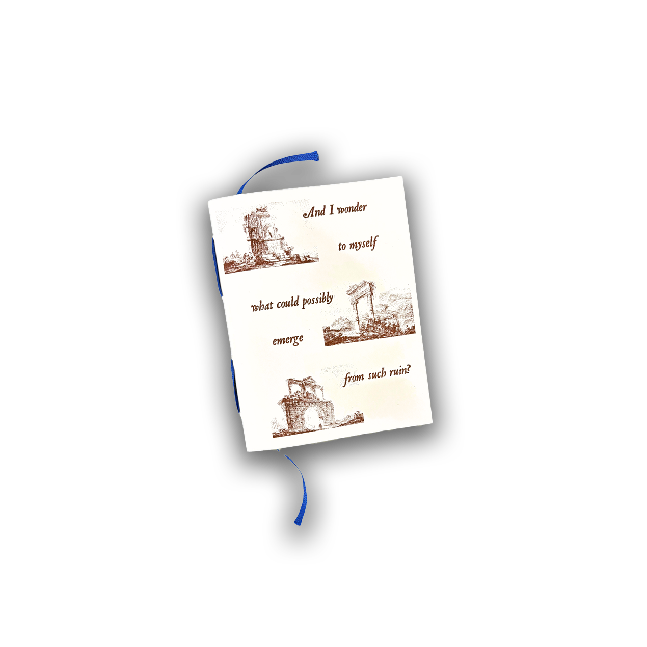 Ribbon-bound, pamphlet notebooks for thoughts on disintegrating matters. Riso printed in Red & Brown ink. 13cm x 17cm. 12pgs